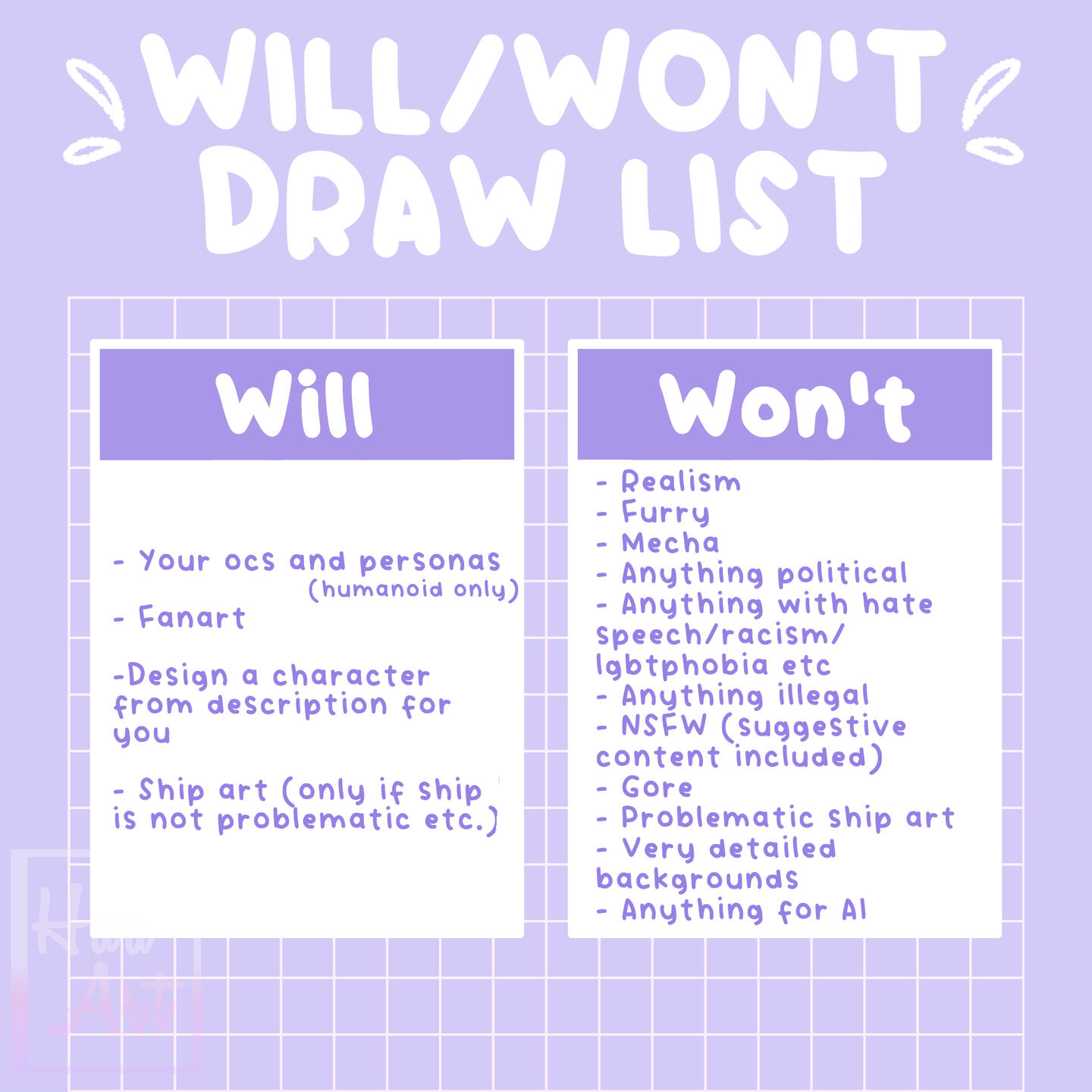 You can check my prices, terms of service, what I'll/won't draw and other important infos <3
